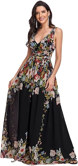 Women's Maxi Dress Floral Print Twisted V Neck Sleeveless Long Dress Summer Casual Dress