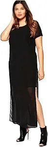 DFHBFG Long Chiffon Dress Women Split Solid Short Sleeve Straigh Office Dress Large Size Party Dress(4X-Large)