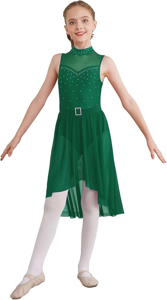 Girls Sequined Ballet Lyrical Dance Chiffon Dress Gymnastics Leotard Sheer Mesh Skirts Costumes