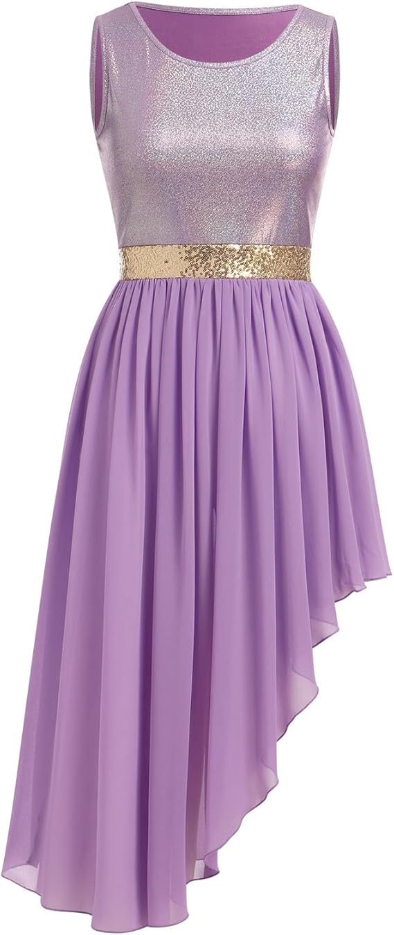 Praise Dance Dress Women Metallic Tank Top Sequin Waist Chiffon Skirt Worship Overlay and Tunic Liturgical Dancewear
