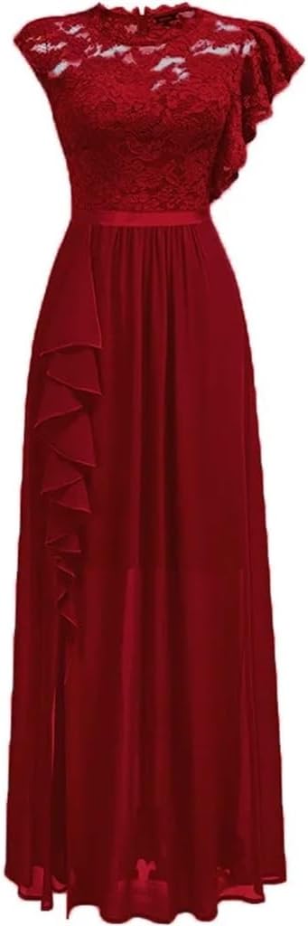 Women's Plus Size Sequin Lace with Ruffle Cape Cloak Sleeves Elegant Evening Wedding Party Maxi Dress
