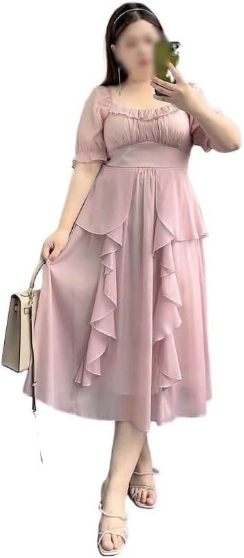 JATDHY Chiffon Dresses Plus Size Women's Bubble Sleeve Slim Long Dresses
