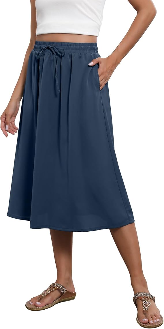 High Waist Tiered Skirts for Women Flowy Skirts for Women Below Knee with Pockets 2025 Women Fashion Trendy