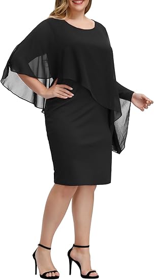 Women's Sleeveless Cape Dress with Chiffon Overlay Sequin Bodycon Pencil Dress