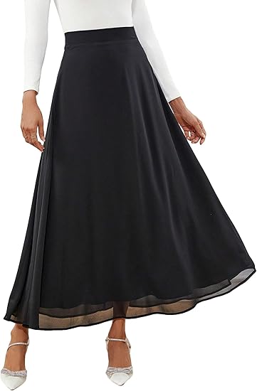 Women's Chiffon High Waisted Flowy Long Skirts Casual Solid A line Maxi Skirt
