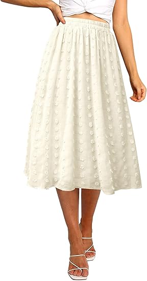 Women's Boho Swiss Dot High Elastic Waist Pleated A-Line Midi Skirt