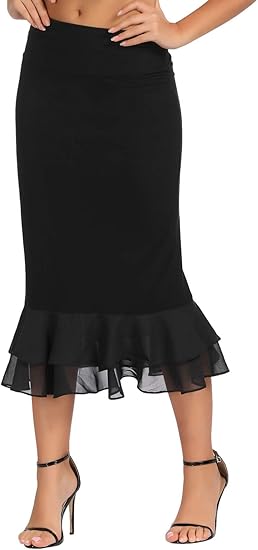 Women's Pink/BlackBlue/White Solid High Waist Trumpet Midi Skirt (10 Colors)